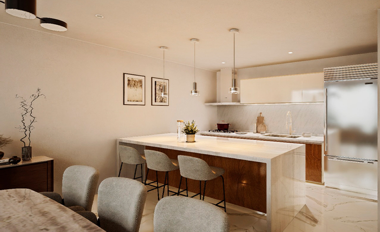 🍳 Cocina Integral (incluye parrilla, tarja, campana y barra desayunadora)