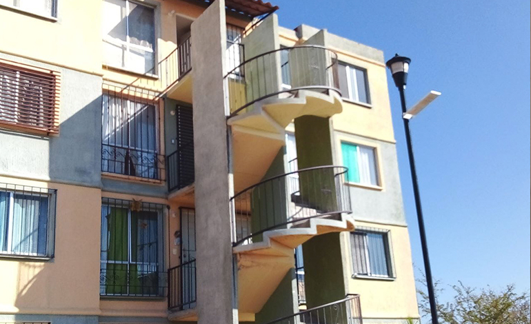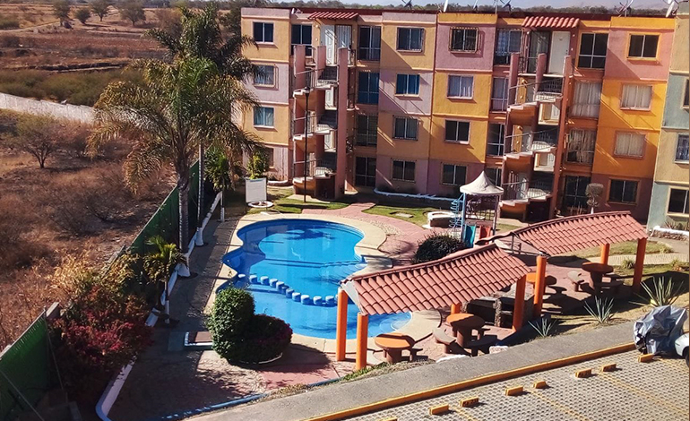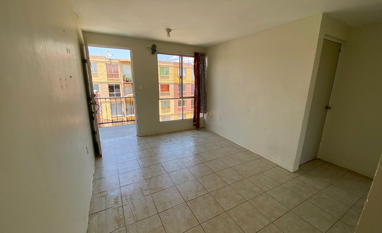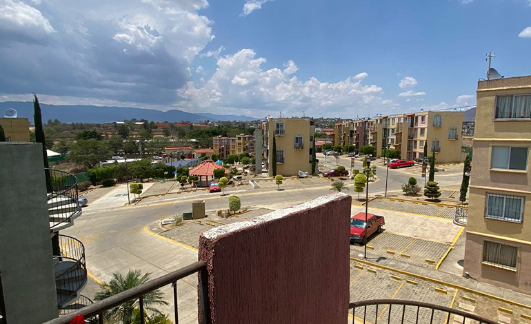 Departamento en piso base, el cual cuenta con 2 recámaras, sala-comedor, cocina, baño compleeto, área de servicio y cajón de estacionamiento